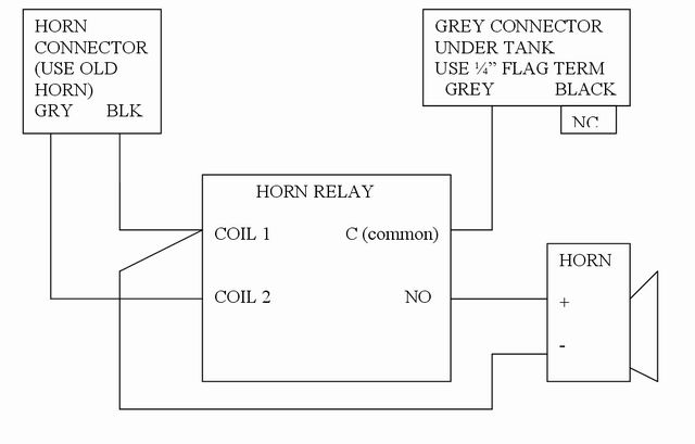 Basic wiring diagram for Stebel (or other high power horn) using no splices or wire taps.