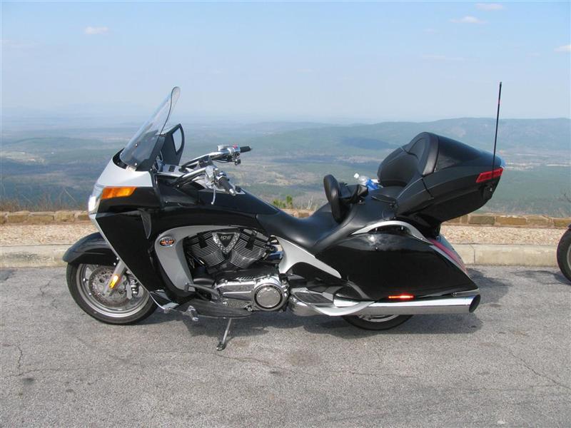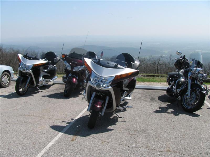 We took a short lunch ride of 560 miles to Queen Wilhelmina Lodge between Talihina, OK and Mena, AR. We had 2 Visions, 1 Goldwing, and 1 Harley Road King. The bike handled the twisties extremely well. Now if I can only get the wife-unit to stop hitting me...